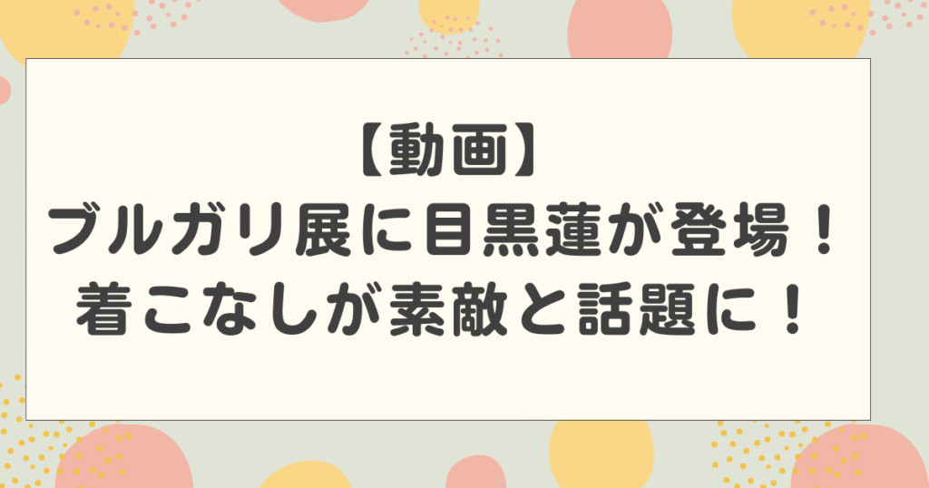【動画】ブルガリ展に目黒蓮が登場!衣装とジュエリーの着こなしが素敵と話題に!