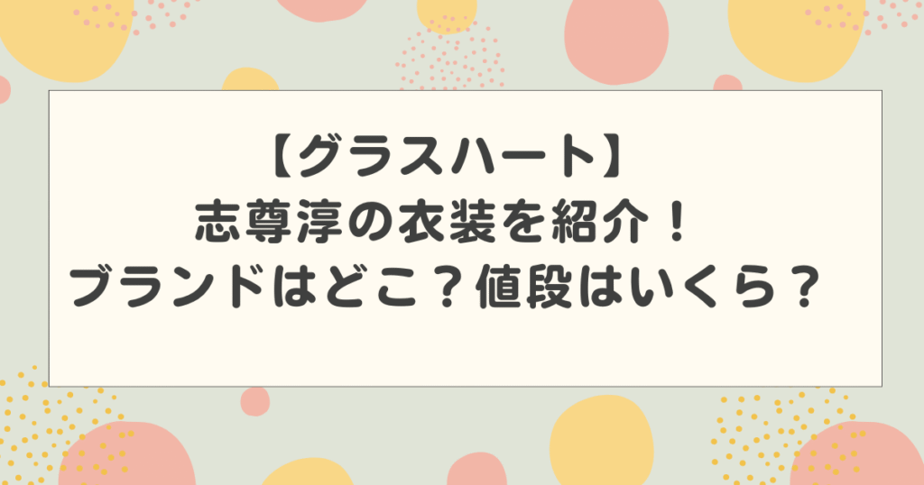 【グラスハート】志尊淳の衣装を紹介!ブランドはどこ?値段はいくら?