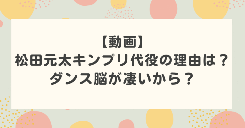 【動画】松田元太がキンプリ代役の理由はなぜ?ダンス脳が凄い!【24時間テレビ】