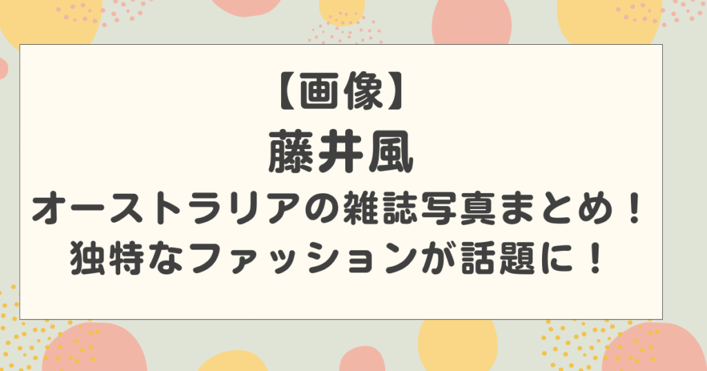 【画像】藤井風のオーストラリアの雑誌写真まとめ!独特なファッションが話題に!