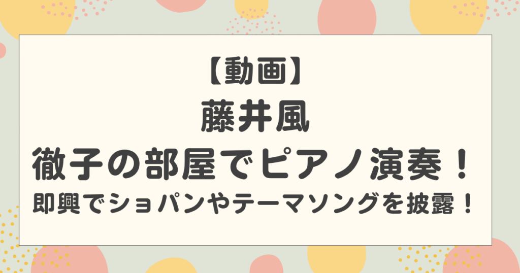 【動画】藤井風が徹子の部屋でピアノ演奏!即興でショパンやテーマソングを披露!