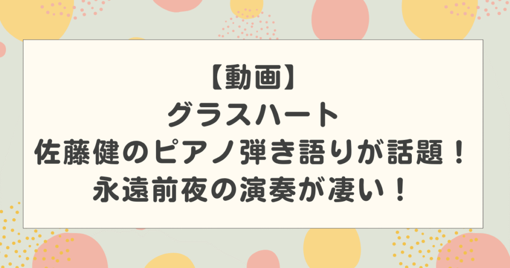 【動画】グラスハート佐藤健のピアノ弾き語りが話題!永遠前夜の演奏が凄い!