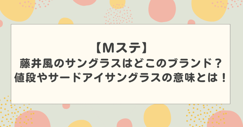 【Mステ】藤井風のサングラスはどこのブランド?値段やサードアイサングラスの意味とは!
