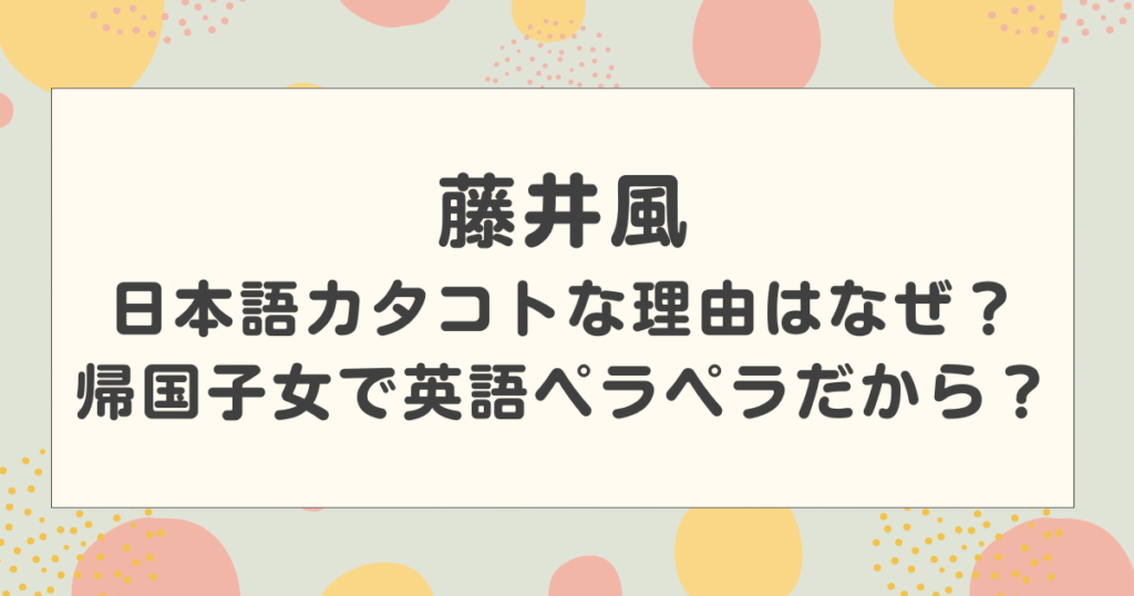 藤井風が日本語カタコトな理由はなぜ?変わってる?帰国子女で英語ペラペラだから?