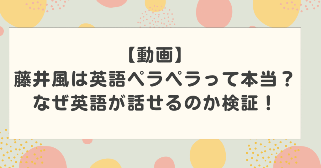 【動画】藤井風は英語ペラペラって本当?なぜ英語が話せるのか検証!